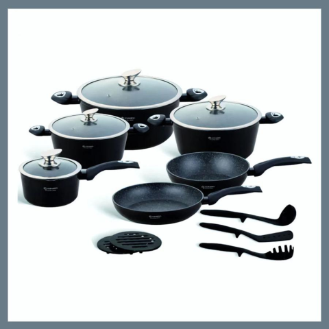 Royalty Line - 15 részes márvány bevonatú edénykészlet, fekete RL15