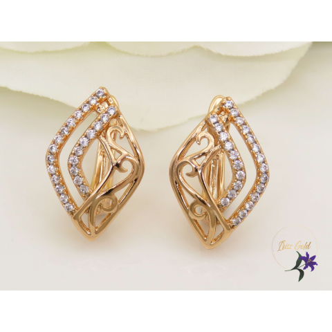 1 kép Rozertina antiallergén rombusz alakú fülbevaló tűcirkónia kövekkel 18K