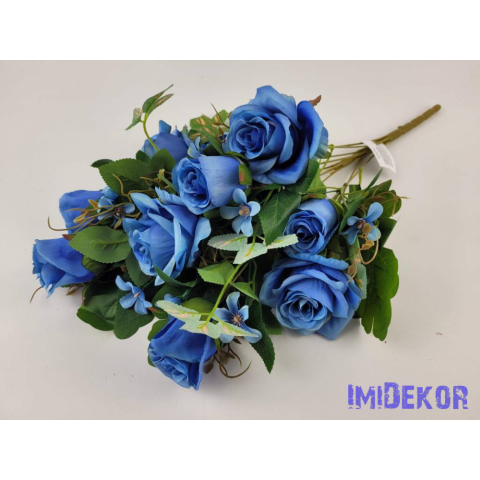 Rózsa 10 ágú féloldalas csokor 51 cm - Kék dekoráció 1 kép