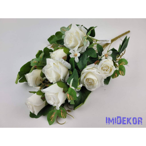 Rózsa 10 ágú féloldalas csokor 51 cm - Krém dekoráció 1 kép