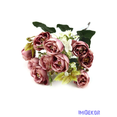 Rózsa 10 fejes kis csokor 32cm - Mályva dekorációs kellék 1 kép