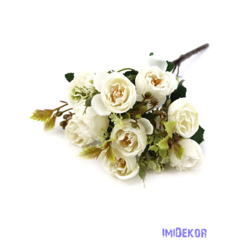 Rózsa 10 fejes kis csokor 32cm - Törtfehér dekorációs kellék 1 kép