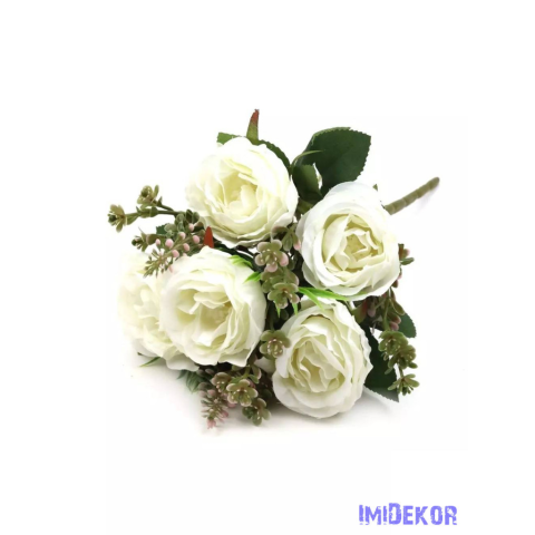 Tedd fel kérdésed a(z) Rózsa 5 fejes csokor kiegészítőkkel 30 cm - Törtfehér termékről!