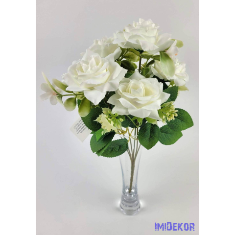 Rózsa 6 ágú selyemvirág csokor 29 cm - Fehér dekoráció 1 kép