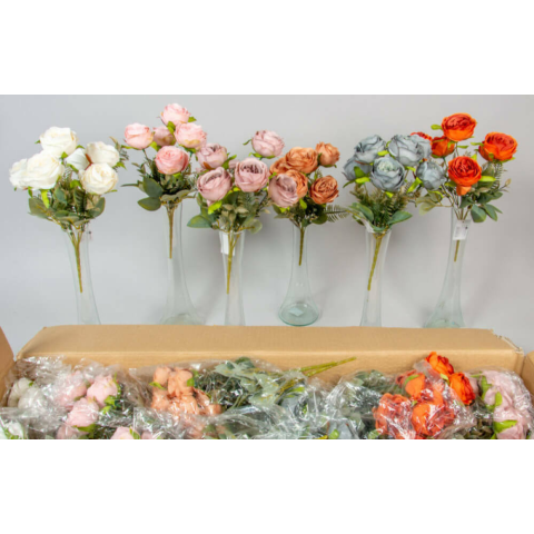 Rózsa 6 fejes selyemvirág csokor 31 cm dekoráció árgrafikon