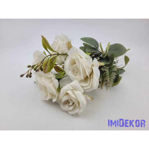 Rózsa 7 ágú selyemvirág csokor 34cm - Bézs