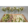 Rózsa 7 ágú selyemvirág csokor zöld díszítővel világos színekben 38 cm dekoráció árgrafikon