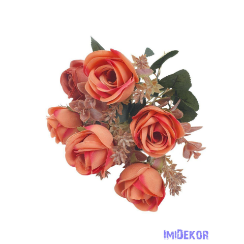 Rózsa 7 fejes selyemvirág csokor 30cm - Narancs dekorációs kellék 1 kép