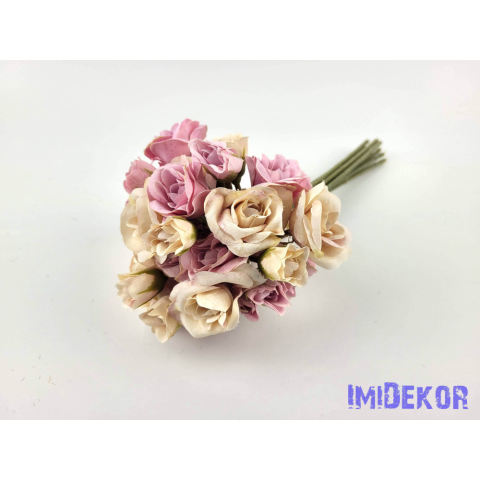 Rózsa 9 ágú kötegelt selyemvirág csokor 30 cm - Bézs-Halvány Lila dekoráció 1 kép