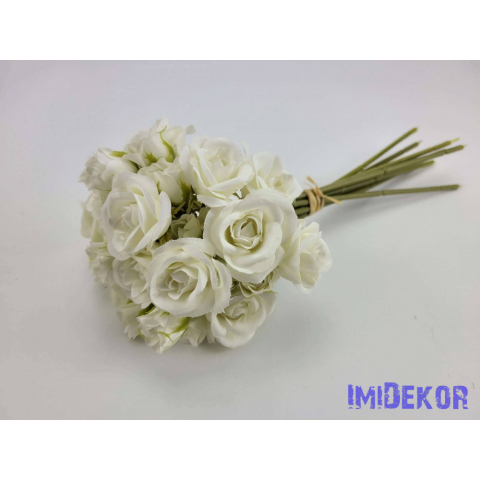 Rózsa 9 ágú kötegelt selyemvirág csokor 30 cm - Törtfehér dekoráció 1 kép