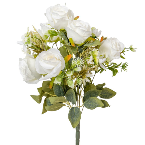 Rózsa csokor 6v. krém M44cm 24db/# dekorációs kellék árgrafikon