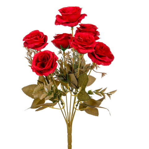 Rózsa csokor 7v. piros M38cm 24db/# dekorációs kellék árgrafikon