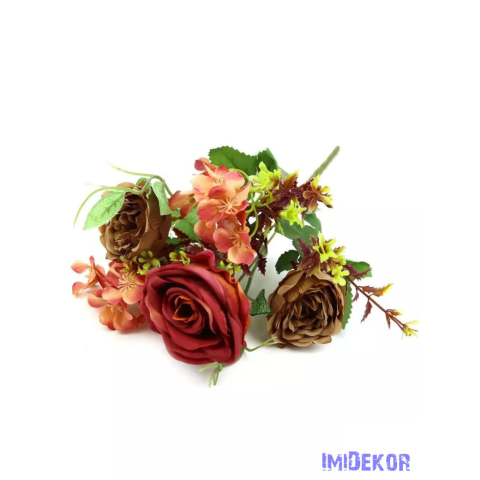 Rózsa csokor apró virággal 32 cm - Barna-Bordó dekoráció 1 kép