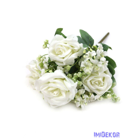 Rózsa csokor díszítőkkel 31cm - Fehér