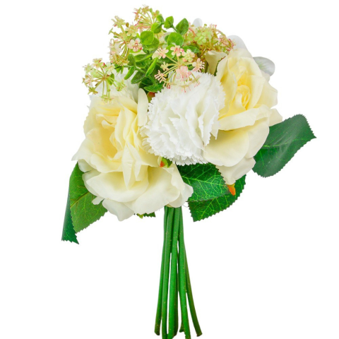 Rózsa, hortenzia szegfű köteg 7v. krém M30cm 24db/#
