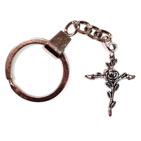 Rózsa kereszt kulcstartó, ezüst színben kulcstartó árgrafikon