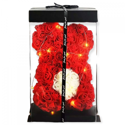 Tedd fel kérdésed a(z) Rózsa maci LED világítással 25cm díszdobozban - piros-fehér termékről!
