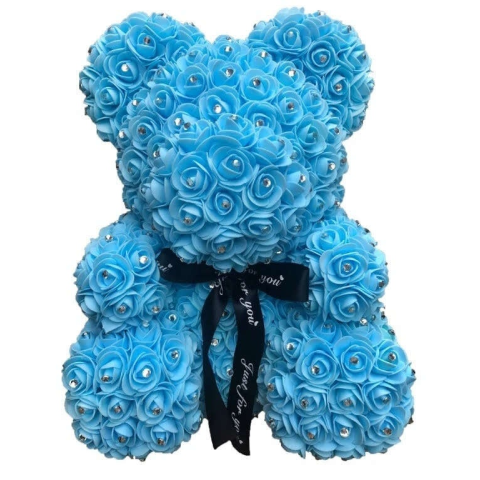 Rózsa maci, virágmaci csillogó strasszkővel 40 cm - kék