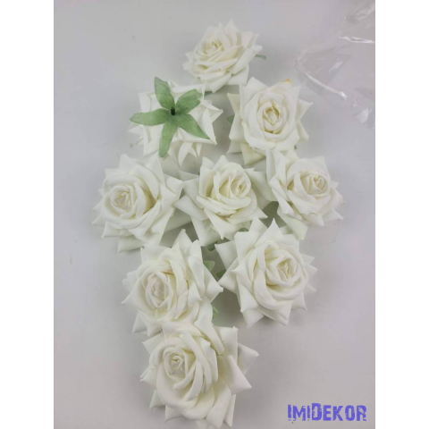 1 kép Rózsa nyílott selyemvirág fej 8 cm - Törtfehér