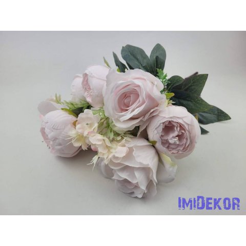 Rózsa-peónia 9 ágú selyemvirág csokor 47cm - Rózsaszín