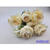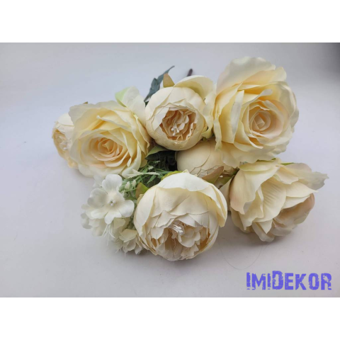 Rózsa-peónia 9 ágú selyemvirág csokor 47cm - Vaj