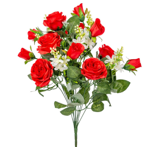 Rózsa, rózsabimbó csokor 12 virágos piros 42cm