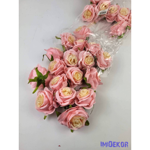 1 kép Rózsa selyemvirág fej 6 cm - Rózsaszín-Krém 630