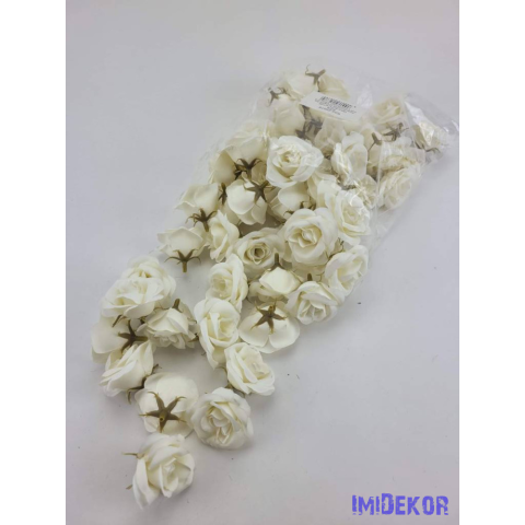 1 kép Rózsa selyemvirág fej kb 4-5cm - Ekrü