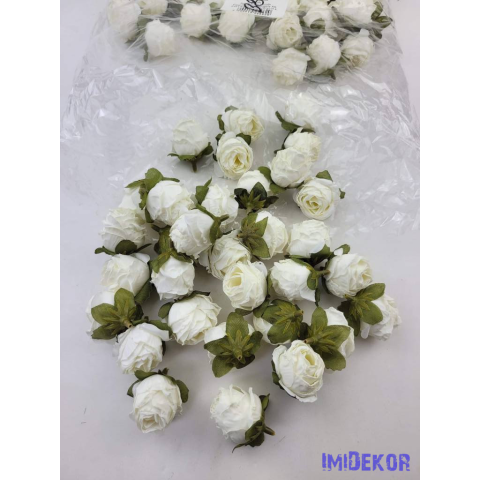 1 kép Rózsa szárazhatású selyem fej 3cm - Fehér