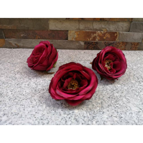 1 kép Rózsa szép nyílott bibés selyemvirág fej rózsafej 7 cm - Bordó
