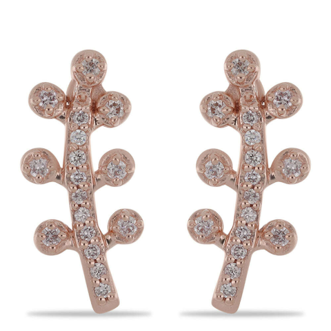 Elegáns rózsaarany fülbevaló rózsaszín gyémántokkal ✨ Ez a gyönyörű fülbevaló tökéletes választás minden alkalomra. A rózsaarany bevonatú ezüst fülbevaló finom rózsaszín gyémántokkal van kirakva, amelyek elegáns csillogást kölcsönöznek. A növényi mo...