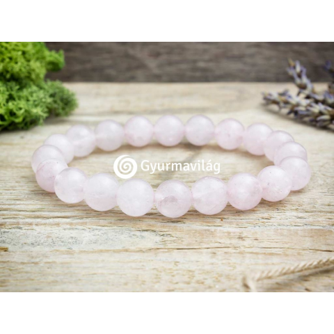 Rózsakvarc szemcse karkötő – szeretet, béke és gyengéd harmónia A rózsakvarc a feltétel nélküli szeretet és az érzelmi gyógyulás köve, amely a szív energiáit finoman, mégis mélyen tisztítja és erősíti. Lágy rózsaszín árnyalata a gyengédséget, az elfogadást és a belső nyugalmat szimbolizálja. Úgy tartják, hogy segít megnyitni a szívet, elengedni a múlt fájdalmait, és újra megtanít szeretni – önmagunkat és másokat egyaránt. A rózsakvarc a szí