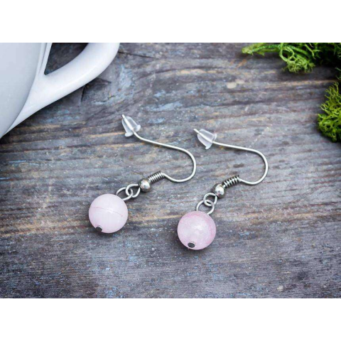 Rózsakvarc lógós fülbevaló 8mm fülbevaló 1 kép