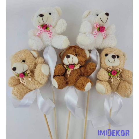 Rózsás maci plüss pálcás figura dekorációs kellék 1 kép