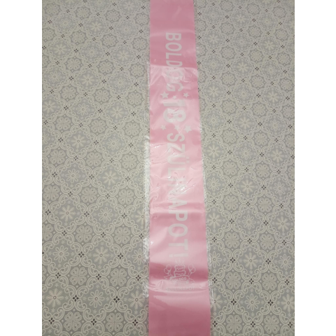 Rózsaszín színű vállszalag Boldog 18. Szülinapot felirattal. Egy születésnapos elengedhetetlen kelléke. Méretei: - szélessége: 9,5 cm - hossza: 1,6 m