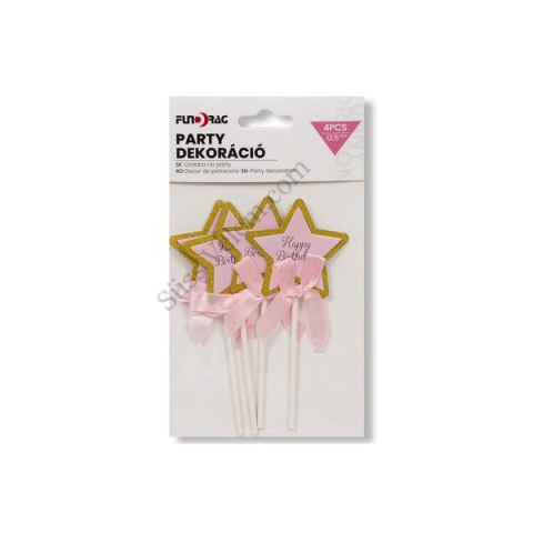 1 kép Rózsaszín-arany csillag alakú Happy birthday tortadísz beszúró 4 db
