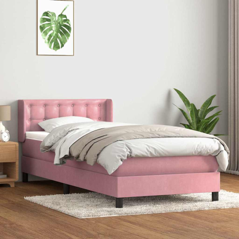rózsaszín bársony rugós ágy matraccal 90x220 cm ágy és ágykellék 1 kép