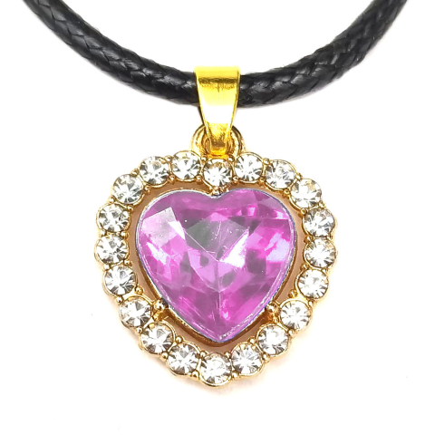 1 kép Rózsaszín kristály szív medál bőr lánccal