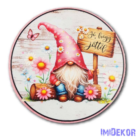 Rózsaszín manó - Jó, hogy jöttél kör 13cm dekorációs kellék 1 kép