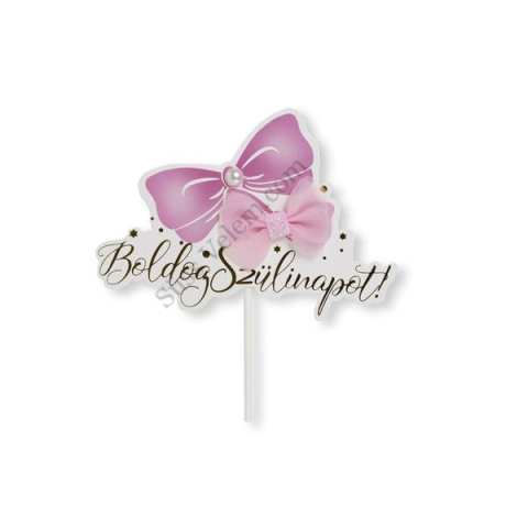 1 kép Rózsaszín masnis Boldog Szülinapot tortabeszúró