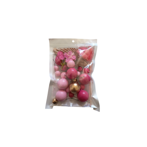 A rózsaszín tortadekoráció szett azonnal magával ragad minden sütni szerető nőt. Képzeld el, ahogy a csodálatos pink, rózsaszín és arany színek életre keltik a tortáidat, miközben a vegyes méretű gömbök, legyező díszek és művirágok minden szemeket nyitó részletet kiemelnek. A szett minden elemét gondosan válogatták, hogy te a lehető legegyszerűbben varázsolhass látványos desszerteket.