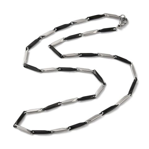 Rozsdamentes acél fekete-ezüst bar link nyaklánc, férfiaknak és nőknek is ideális. Méret: Hossza 50 cm, szélessége 3 mm. Szemek mérete: 14.5x3x3 mm. Anyaga rozsdamentes acél, nem rozsdásodik, minőségi tervezés és kivitelezés