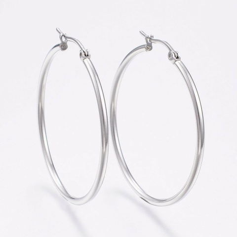 Rozsdamentes acél karika fülbevaló, átmérő 4,6 cm, látványos ékszer. Méret: átmérő kb. 4,6 cm. 2mm vastag, csat: 0.7~1.3x0.68 mm. Anyaga rozsdamentes acél, nem kopik, nem korrodálódik, minőségi tervezés és kivitelezés