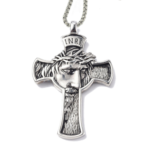 Látványos rozsdamentes acél nagyméretű kereszt medál nyaklánccal, ezüst színben. Méret: nyaklánc hossza 50 cm, anyaga rozsdamentes acél, szélessége 3 mm. Medál mérete: 5,7x3,7 cm, 304 rozsdamentes acél. Akasztó rés mérete: 4x5 mm.