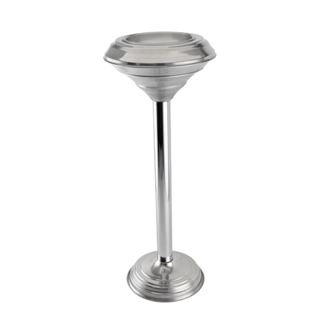 Modern, rozsdamentes acélból készült, 71 cm magas padlón álló hamutartó, amely elegáns és praktikus megoldást kínál közösségi terek, bejáratok vagy teraszok számára. Stílusos és tartós megoldás dohányzásra kijelölt helyekre, legyen szó vendéglátóhelyek