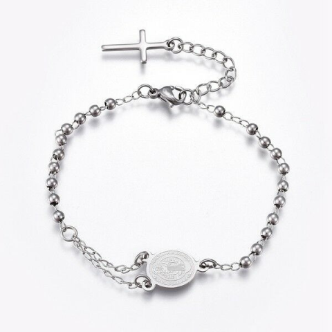 Teljes Rozsdamentes acél rózsafüzér női karkötő, 17+5 cm termékleírás