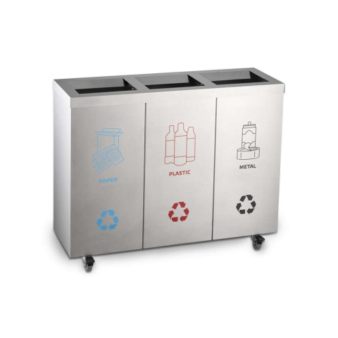 Rozsdamentes acél szelektív szemetes 3 részes 430-as acél - rozsdamentes acél 304-as minősítéssel, matt - Termék mérete: 30x90x60 cm, - Karton méret: 35x98x77 cm - 3 részes - 160liter - levehető felső kerettel a könnyebb tisztítás érdekében