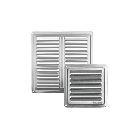 Rozsdamentes acél burkolat az épületnyílások szellőzőrácsához; alkalmas beltéri és kültéri használatra;