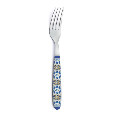 Rozsdamentes villa műanyag dekorborítású nyéllel, 21cm, Maiolica Blue tányér és evőeszköz 1 kép