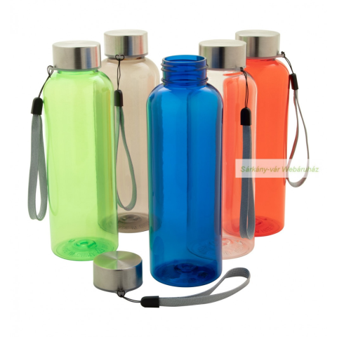 BPA-mentes RPET műanyag sportkulacs rozsdamentes acél kupakkal és hordszíjjal, 500 ml. Nem alkalmas szénsavas italok tárolására. Méret: ø65×200 mm Kapacitás: 500 ml Rendelésre: 5-10 nap! A dekoráció nem képezi az ajánlat részét! Anyag: Újrahasznosí